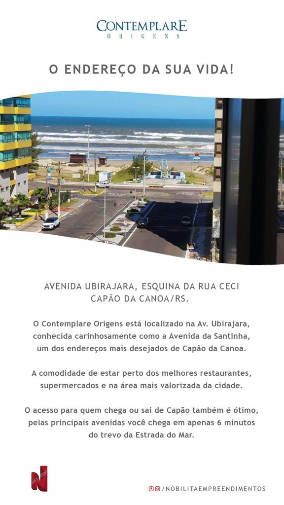 Edifício padrão classe AA, localizado no Bairro Navegantes (Ubirajara com Ceci).A comodidade de estar perto dos melhores restaurantes, supermercados, hospital e na área mais valorizada da cidade. O acesso para quem chega ou sai de Capão também é ótimo, pelas principais avenidas você chega em apenas 6 minutos do trevo da Estrada do Mar. Prédio com rooftop composto por deck na área gourmet externa, fire place, piscina com cascada e borda infinita, área fitness, pet garden, cabine anti-stress, escada move up, hall de entrada mobiliado e decorado. Apartamentos de 1, 2 e 3 dormitórios com suíte.