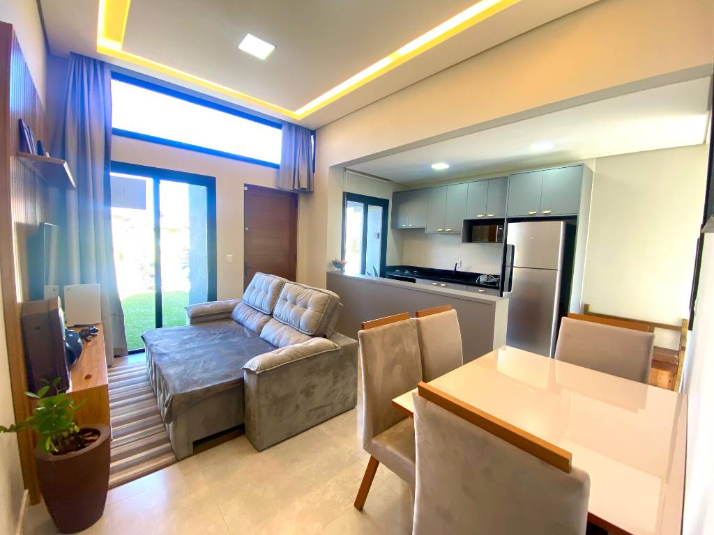 Alto Padrão construtivo, ótima casa térrea, composta por 02 amplos dormitórios, suíte, banheiro social, cozinha estilo americana, área de serviço separada, água quente, gás central, hidrômetro individual, living em 02 ambientes, nova, nunca habitada, totalmente mobiliada e decorado e com vaga de garagem. Na região mais procurada pelos moradores, junto a todos os recursos e poucos metros do centro. Estudamos receber seu veiculo como parte de pagamento. Solicite informações.